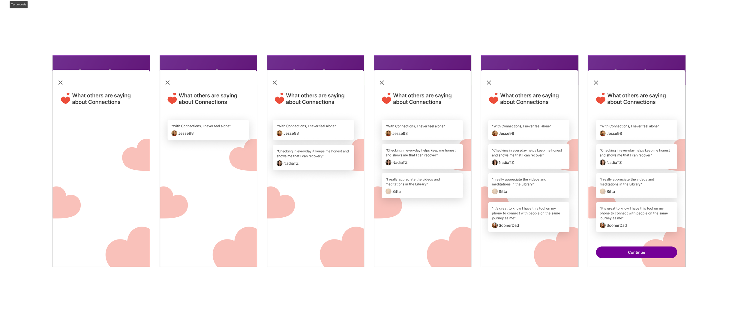 Show personal comments made from those in the community. It would allow the patients to reasonate and see how Connections’ is useful.